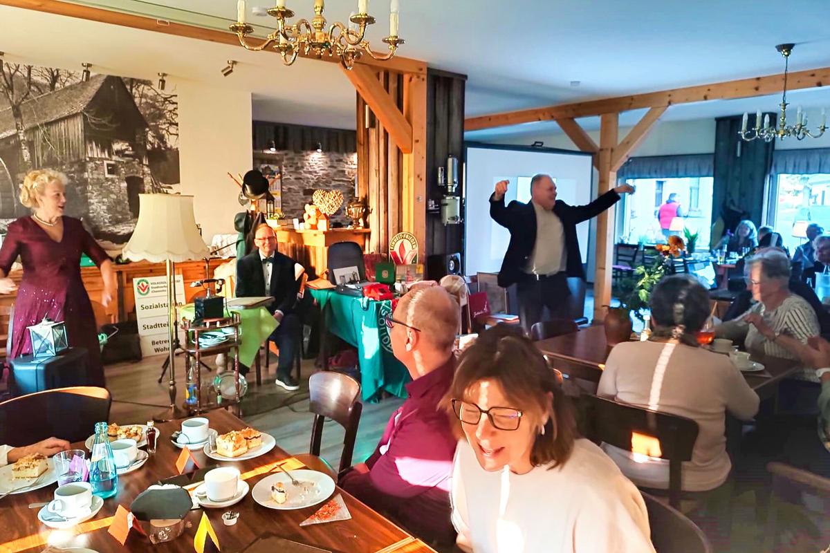 Bei Kaffee und Kuchen eröffnete Rita am Keyboard den Nachmittag, bevor sie gemeinsam mit den Gesangskünstlern Ellen und Andreas musikalische Erinnerungen aus acht Jahrzehnten erklingen ließ.