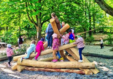 Die Kinder konnten es kaum erwarten – und sobald das rot-weiße Band durch war, wurde das neue Klettergerät mit leuchtenden Augen und viel Begeisterung in Beschlag genommen. Kein Baumstamm blieb leer.