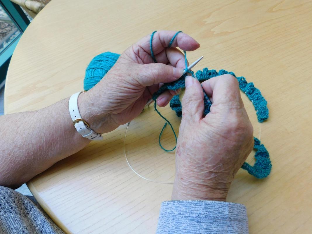Seit sieben Jahren wohnt Frau N. in unserem Seniorenpflegeheim „An der Mozartstraße“ in Chemnitz. Tagsüber hat sie ihren Stammplatz im Foyer. Die Bewohner nennen sie liebevoll unser Strickliesel. Unermüdlich geht sie ihrem Hobby nach. Uns zeigt sie nun stolz eine Puppe, welche sie für die Kita „Farbenfroh“ eingestrickt hat.