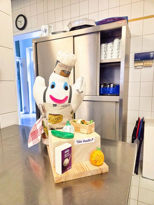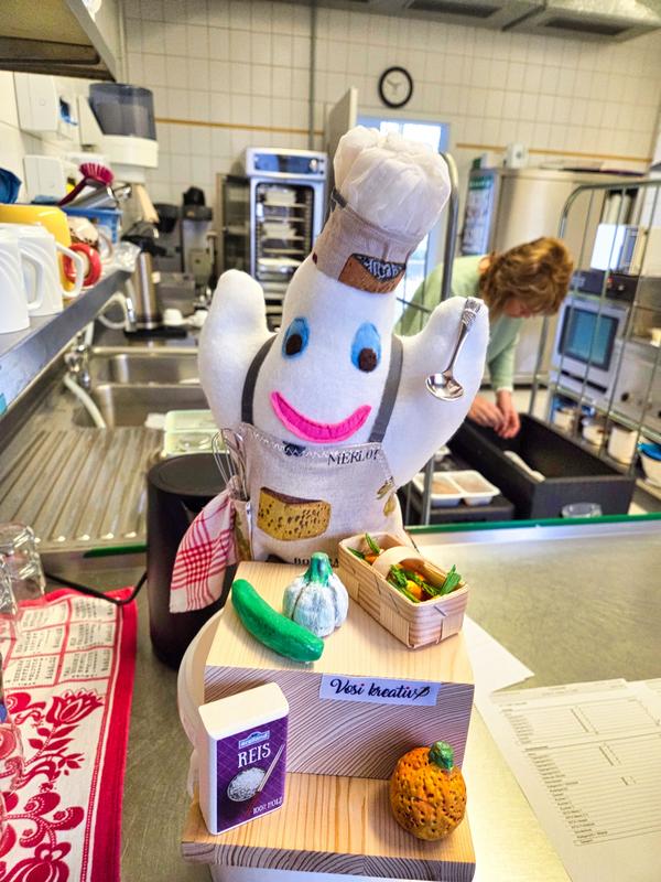 Mit ganz viel Liebe, Kreativität und handwerklichem Geschick hat unser Nähzirkel „Vosi Kreativ“ einen eigenen Stoffgeist für uns angefertigt. Er steht symbolisch für den starken Zusammenhalt, die gute Stimmung und das Miteinander, das unser Küchenteam jeden Tag lebt.