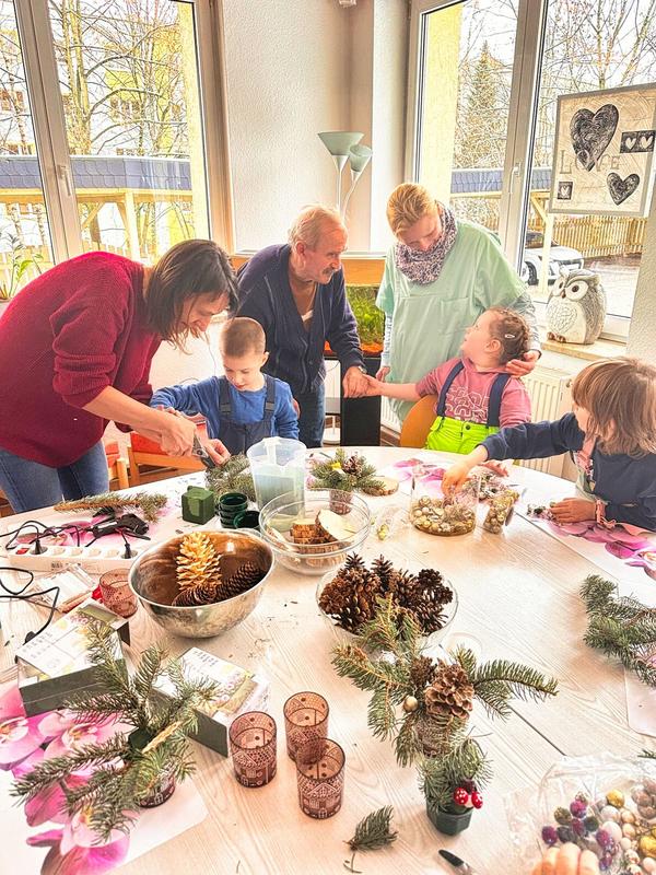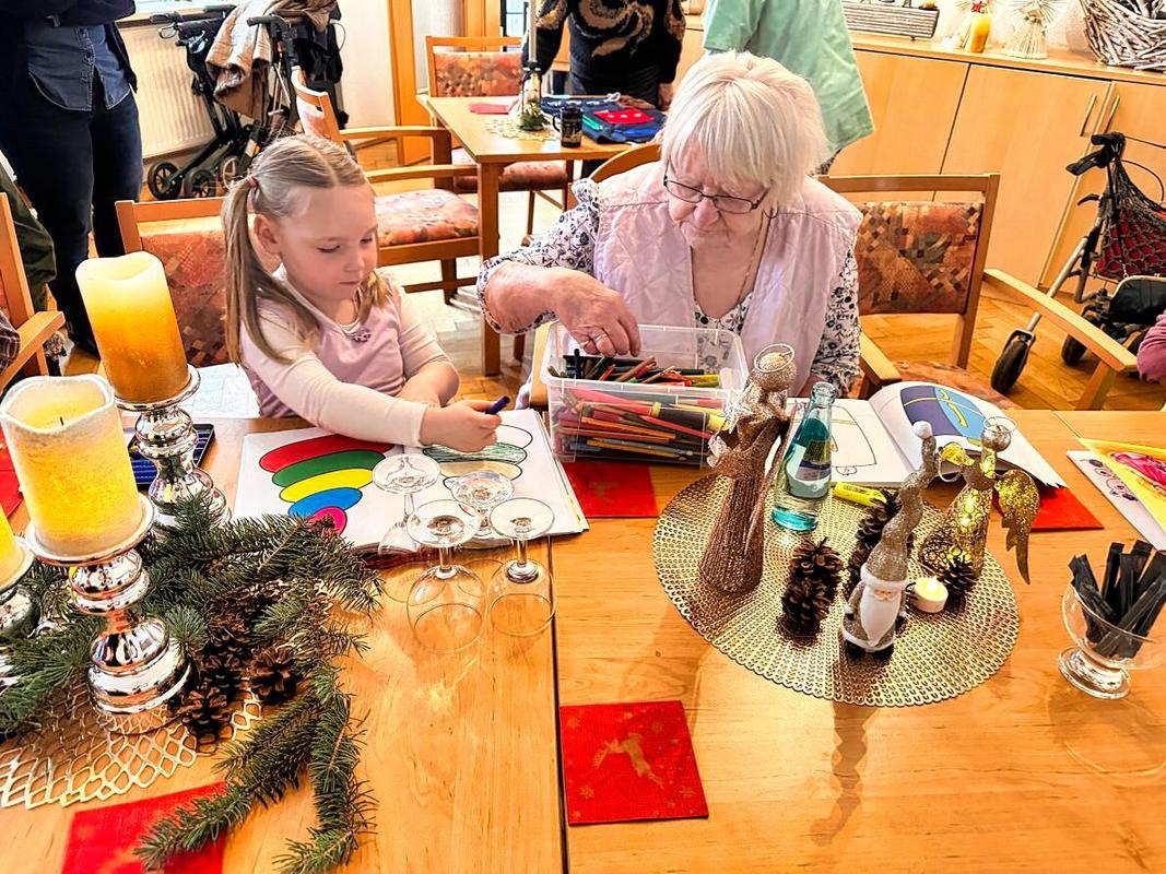 Mit viel Begeisterung wurden weihnachtliche Gestecke gebastelt, gemalt und natürlich auch gemeinsam zu Mittag gegessen. Für die Kinder gab es zum Abschluss noch eine kleine Überraschung direkt aus dem Weihnachtsmannsack – die Freude war auf beiden Seiten riesig.