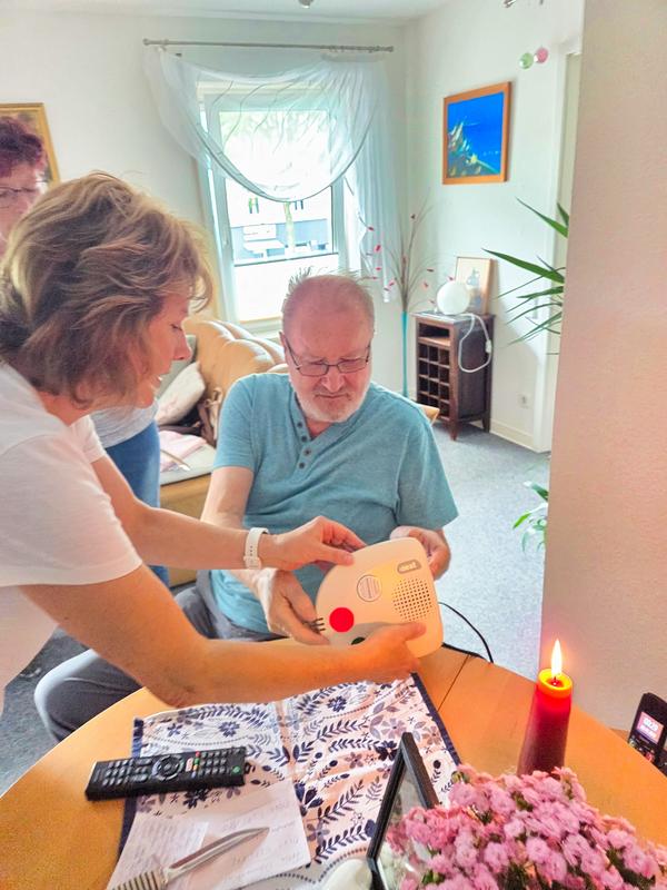 Bei Herrn Meinhold sorgt sie zuletzt dafür, dass er sich bei uns im betreuten Wohnen sicher und gut aufgehoben fühlt – unter anderem durch die Aufschaltung des Notrufs. Mit dem praktischen Handsender kann Herr Meinhold jederzeit Hilfe rufen, falls es nötig sein sollte. So wird der Alltag sicherer und entspannter für alle Beteiligten.
