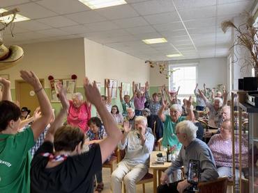 Beim Mitmach-Teil wurde es richtig lustig: rechte Hacke, linke Hacke, Kick, zwei Schritte nach links und drehen – gar nicht so einfach, aber alle hatten viel Spaß dabei!