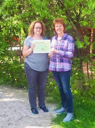 Überreicht wurde dieser symbolische Scheck von unserer Sozialbetreuerin Frau Domaratius (rechts im Bild) an die Kitaleiterin Frau Scherf (links im Bild). Dieser schöne Moment wurde anschließend gemeinsam mit den Kindern und Erziehern gefeiert.