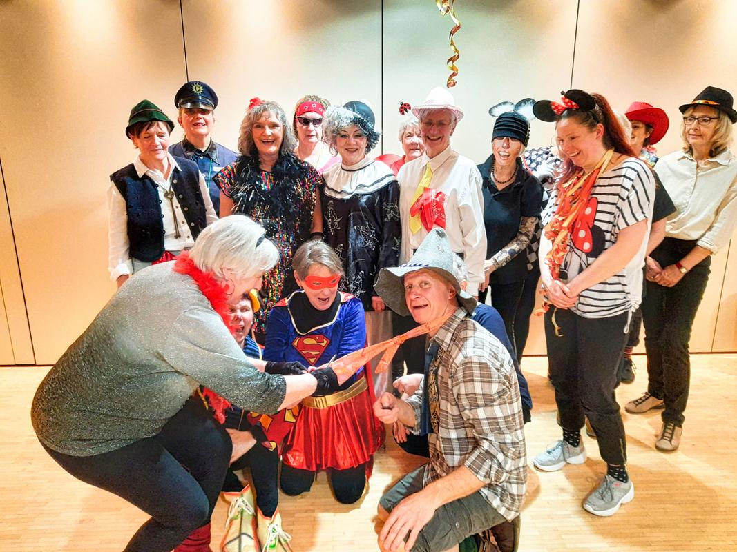 Traditionell feierten wir auch Weiberfasching schon im 5. Jahr – zur Freude unserer Tanzfreundin Elke, die jedes Jahr unserem Matthias den Schlips abschneidet.