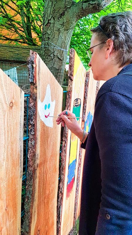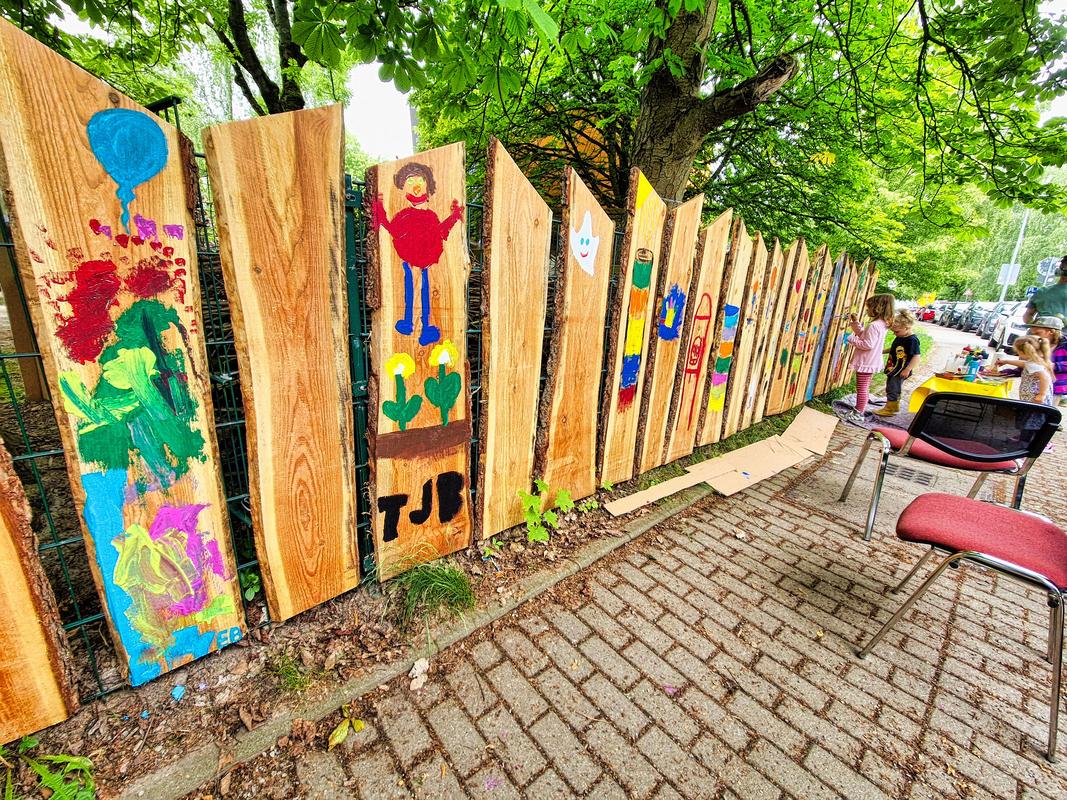 Ein besonderes Highlight war zudem die aktive Zaungestaltung mit dem Chemnitzer Musiker und Graffiti-Künstler „speche40758“. Gemeinsam mit unseren kleinen und großen Gästen gestaltete er live ein buntes Kunstwerk mit der Skyline von Chemnitz – ein echter Hingucker für unser Kinderhaus..